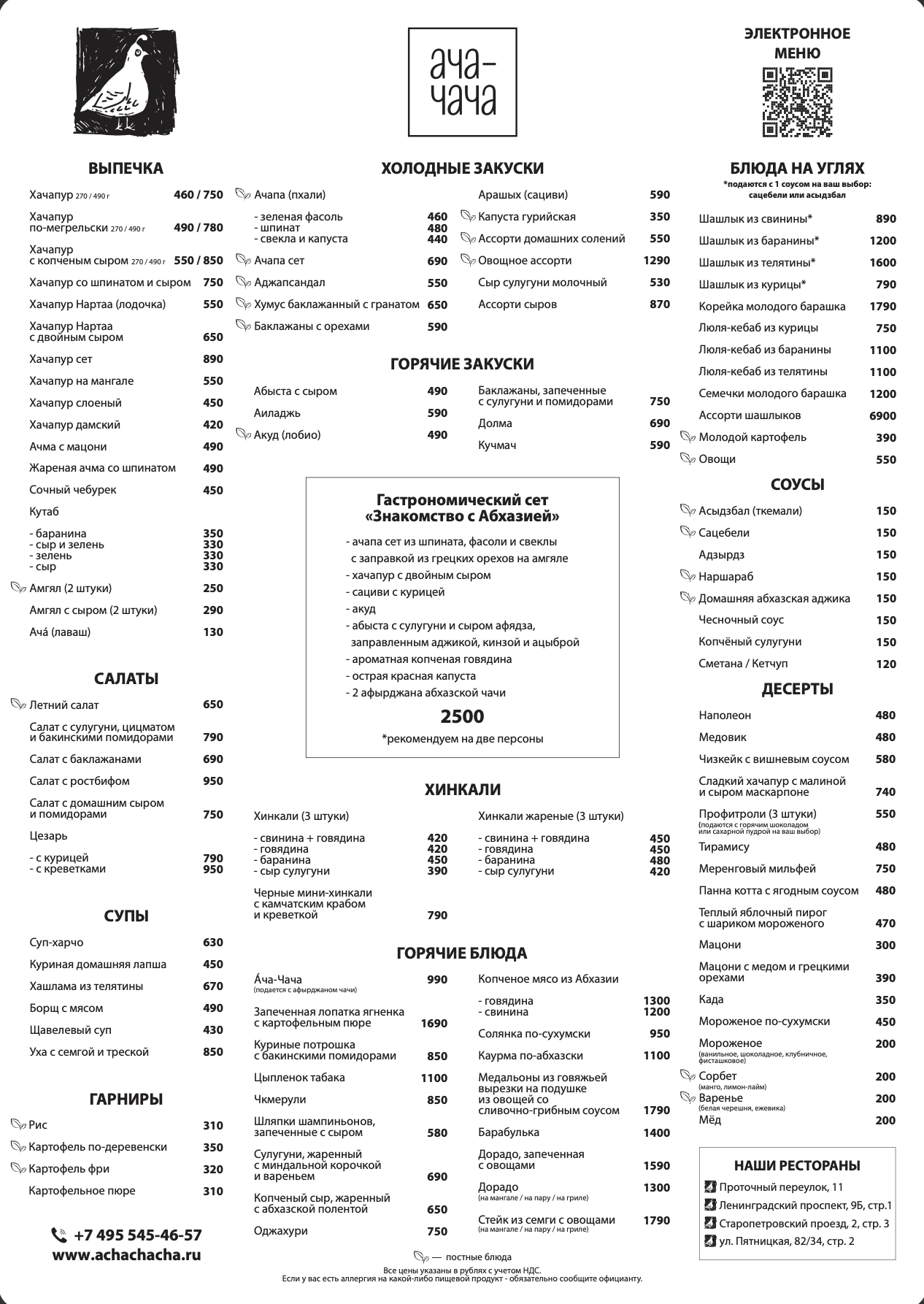 В 2016 году в Москве появилась «ÁЧA-ЧÁЧA» — сеть ресторанов, где тепло встреч, вкус домашней еды и открытое сердце стали главными ингредиентами. Название говорит само за себя: в переводе с абхазского «ача» - это хлеб (áча) и перепёлка (ачá) символ простоты и щедрости стола, а «чача» - традиционный напиток, который подают, когда встречают по-настоящему дорогих гостей.